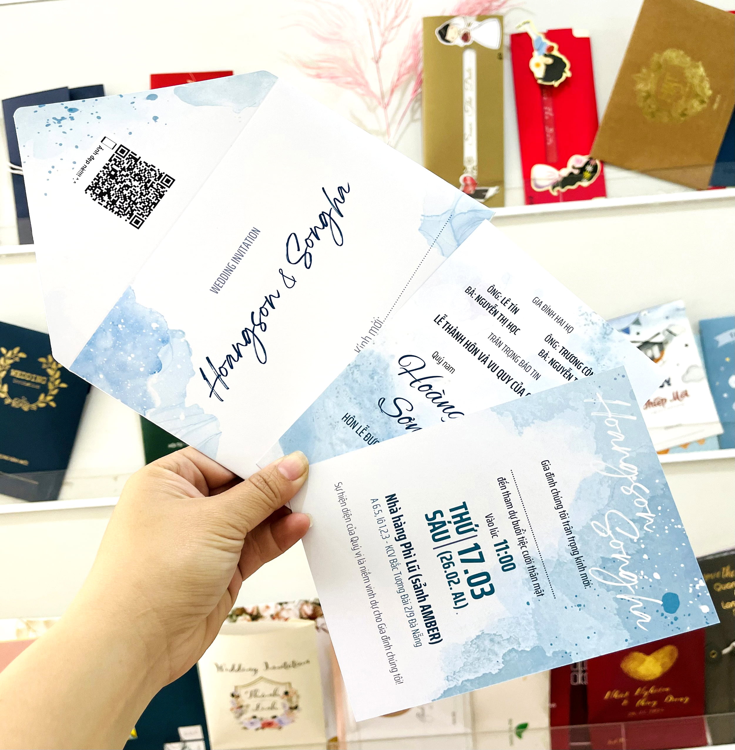 Thiệp cưới blue watercolor có thể được thiết kế với nhiều kiểu dáng và kích thước khác nhau tùy thuộc vào sở thích và phong cách của cặp đôi. Ngoài ra, thiệp cưới này còn có thể được in trên nhiều loại giấy khác nhau như Fort, Camay, acrylic… để tạo nên sự độc đáo và sang trọng cho thiệp cưới.