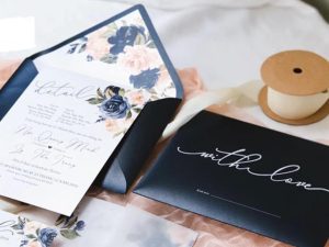 Một cách khác để sử dụng màu xanh là sử dụng nó như một màu chính trên thiệp. Một thiệp cưới màu xanh đậm có thể tạo ra một sự nổi bật đáng chú ý và có thể được kết hợp với các hoa và lá khác để tạo ra một thiệp cưới đẹp và tinh tế.