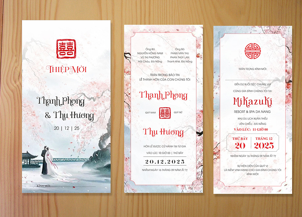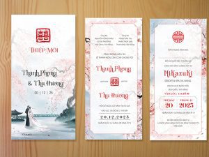 Mẫu thiệp cưới phong cách Tranh Thủy Mặc